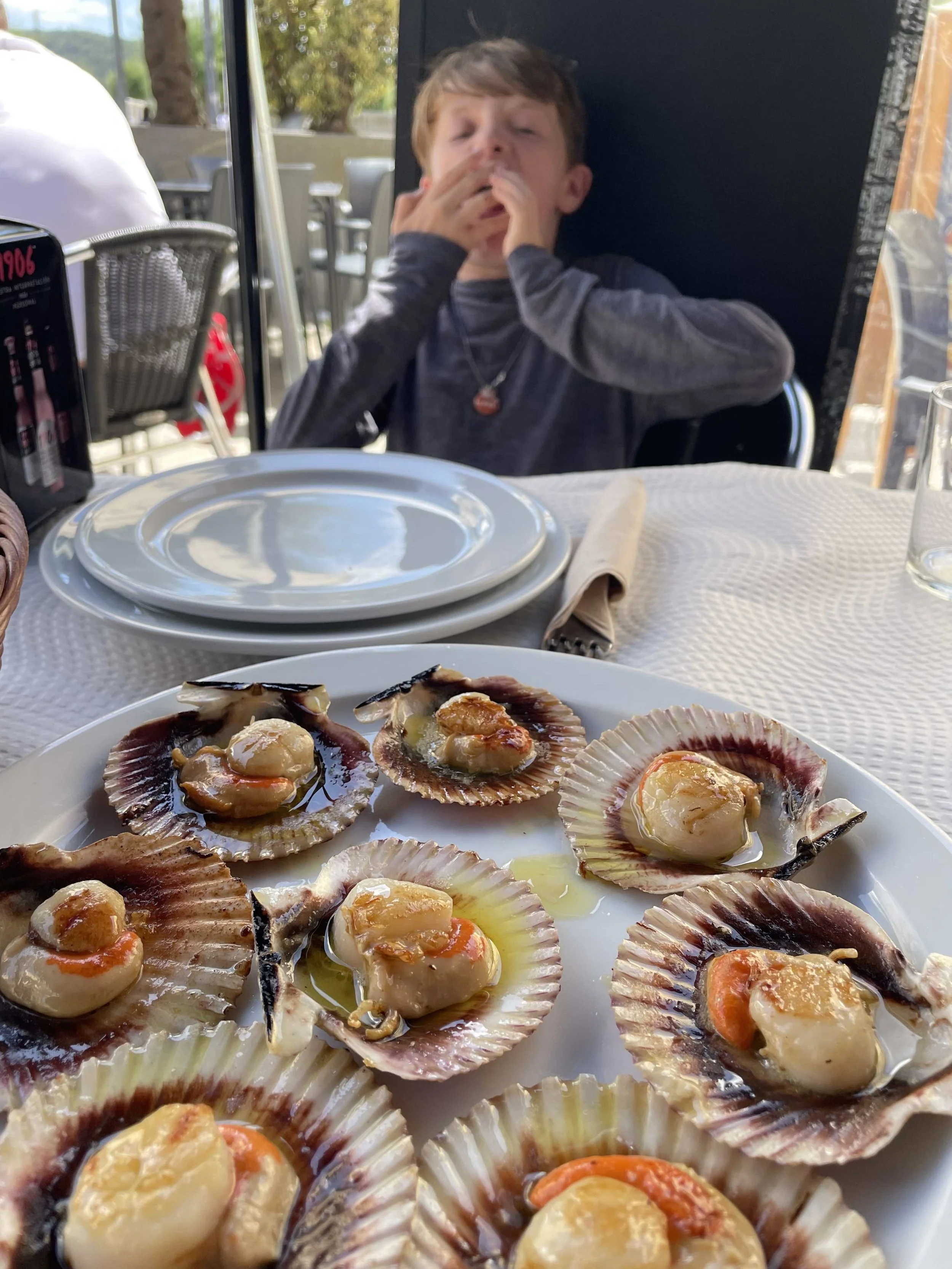 Now, inside the church, I wait for mass to start. You and your Mum are currently lining up to view the tomb of St James, to kiss his statue, something I have already done. Well, not the kissing part, but I did place my forehead against the cold stone shell on his back. That’s all you get to see when you file past because the front of him is facing outwards into the cathedral and the path, which goes under the altar to the tomb then weaves around behind it, is separated from the rest of the space by wooden bars.